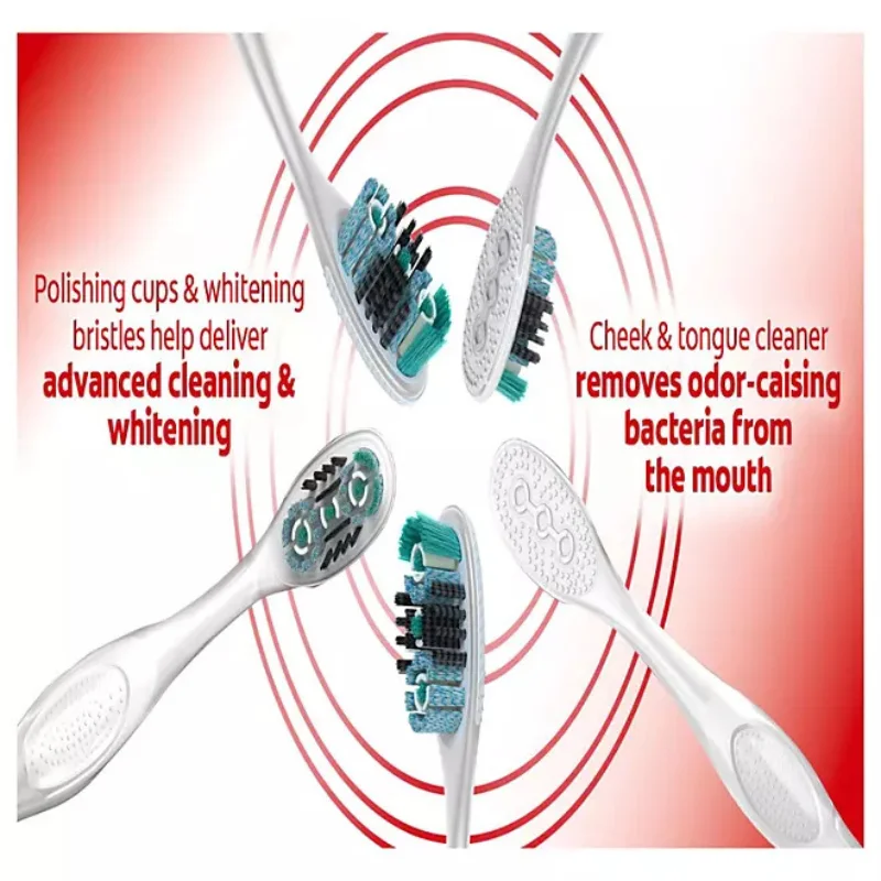 This toothbrush does more than just clean your teeth; it also keeps your teeth looking whiter. Your teeth’s surface stains will be thoroughly removed by its spiral polishing brushes. The toothbrush is a complete oral hygiene tool thanks to its creative cheek and tongue cleaner design, which further increases its efficacy.