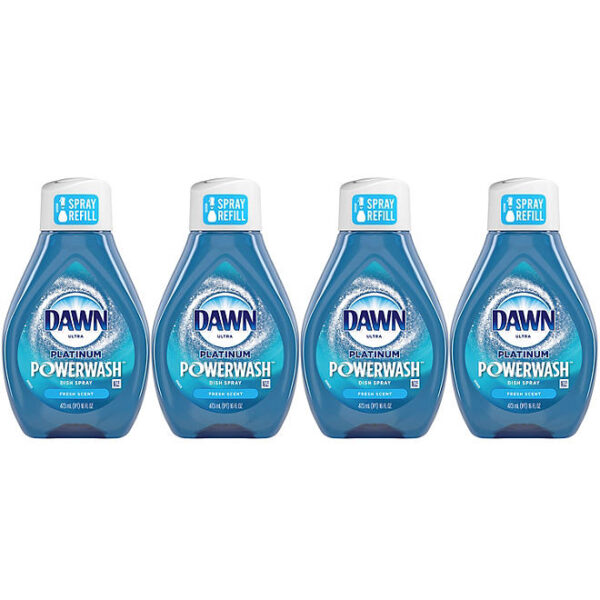 Dawn Platinum Dishwashing Liquid Dish Soap, Refreshing Rain (90 fl. oz.) is a grease-fighting composition that will handle even the dirtiest and toughest everyday messes. * Dawn Platinum’s formula is powerful enough to remove even the most stubborn messes, including baked-on, burnt-on, and dried-on meals, with 4X more grease cleaning power per drop. This covers messes that are 48 hours old. Additionally, Dawn Platinum liquid dish soap’s strength eliminates the need for soaking and less scrubbing.