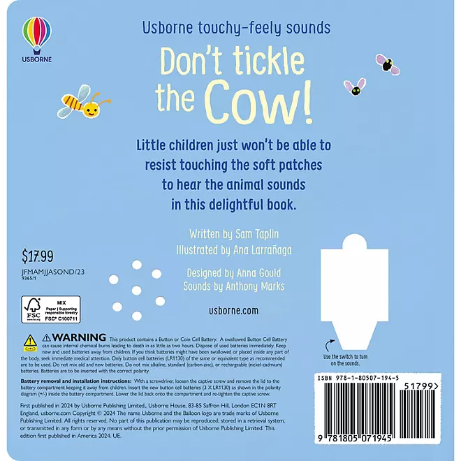 To hear the many farm animals come to life, touch the soft spots in this amusing novelty sound book. Fans of Usborne’s best-selling That’s Not My… series will love this humorous and engrossing book, which is sure to make kids laugh. This book creates a multisensory experience by fusing tactile patches with thoughtfully composed audio.